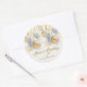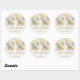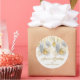 Un pegatina redondo presenta su nombre de negocio y saludo con letras de moda acentuadas con un diseño de ornamentos de plata y oro y copos de nieve. COINCIDIENDO elementos de nuestra colección.