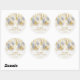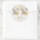 Un pegatina redondo muestra tu nombre y el saludo de Feliz Navidad con letras de moda acentuadas con un diseño de adornos de plata y oro y copos de nieve. COINCIDIENDO elementos de nuestra colección.