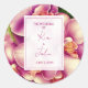 Las orquídeas en flor representan un atractivo ornamental, incluso romántico, para estos pegatinas redondos clásicos y bodas. Los colores son cálidos y románticos: mezcla de violeta, ciruela, champán, marfil y tonos verdes. Utilice la plantilla para personalizar.
