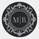 Pegatina Redonda Ornate Floral Monograma Boda Black Silver