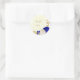 Pegatina Redonda oro azul real y flores blancas