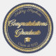Pegatina Redonda Oro elegante | Clase Blue Grad Cap de 2023