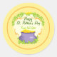 Festiva olla de oro y borde de shamrock con lazo sobre fondo amarillo suave. línea de texto personalizar o eliminación