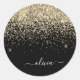 Pegatina Redonda Oro Negro Glamour Glitter Brillante Monograma Nomb