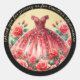 Pegatina Redonda Oro Negro Rojo Vestido Quinceañera Gracias Regalos