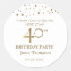 Pegatina Redonda Oro personalizado y tema blanco 40 cumpleaños