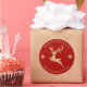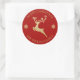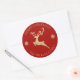 Pegatina Redonda Personalizada Purpurina Oro y Rojo Reno Cuento Navideño Feliz Navidad.