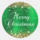 Pegatina Redonda Oro Purpurinoso y Relieve metalizado verde Feliz N
