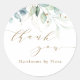 Este pegatina de agradecimiento presenta eucalipto de color agua pintada, hojas de purpurina verde botánico y oro con escritura dorada.