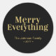 Pegatina Redonda Oro y negro moderno Merry Everything Navidad
