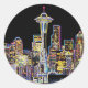 Pegatina Redonda Oscuro sea la noche - Luminoso Skyline Seattle