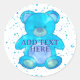 Pegatina Redonda Oso De Bebé Cuidado En Personalizado Azul Texto