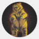 Oso grande de color dorado y marrón de pie con garras y colmillos afilados con fondo de ráfagas estrelladas. ¡Ideal para los amantes del oso y de los animales salvajes!