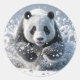 Pegatina Redonda Oso Panda Corriendo En Nieve