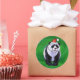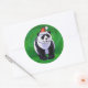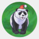 Pegatina Redonda Oso Panda en Santa Hat en Green