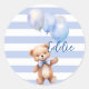 Un oso pequeño más lindo sostiene globos, todo con un tema azul. Personalizar a su gusto.