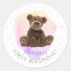Pegatina Redonda Oso Salvaje Rosa Primer Cumpleaños Cute Moderno