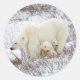 Pegatina Redonda Osos polares hembra y dos cubos