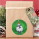 Pegatina Redonda Oveja en Sombrero de Santa sobre verde