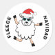 Pegatinas divertidas de "Feliz Navidad" (o sellos de sobre) con una oveja alegre bailando con un sombrero rojo de Santa con un saludo festivo "FLEECE Navidad". Arte original de KL Stock