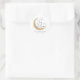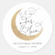 El diseño muestra una falsa luna de oro con "Estamos sobre la luna" en un lindo texto de caligrafía. Personalice su información o haga clic en "Haga clic en el personalizar más adelante" para editar estilos de fuente, tamaño y colores.