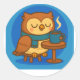 Pegatina Redonda Owl Coffee Break (Blue Background) Sticker