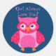 Búho Te Ama Valentine Pegatina, Glossy. Puede cambiar fácilmente el texto, el color de fondo o la forma de este lindo El día de San Valentín de búho pegatina!