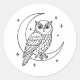 Pegatina Redonda Owl on Crescent Moon with Stars Line Art