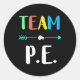 Pegatina Redonda P.e. Maestra Escolar Pe Maestra Fuerte Té Físico