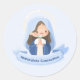 Pegatina Redonda Pacífica Virgen Kawaii, María orando - Azul claro
