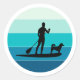 Pegatina Redonda Paddleboard Paddle Paddle Perro de deportes acuáti