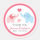 Patrón diagonal de rayas blancas y rosadas en el fondo con tres elefantes lindos, el papá de azul, la madre de rosa con una flor blanca en la cabeza y la niña de rosa claro. Ideal para la ducha de bebé o los regalos de parto.