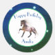 Pegatina Redonda Paint Horse Happy Birday Blue Green Pegatinas