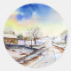 Pegatina Redonda Paintaje paisajístico de color acuático de Wintery