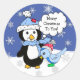 Pegatina Redonda Pájaro Pingüino y Azul de Nieve navidades