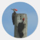 Pegatina Redonda Pájaros de pájaros carpinteros en un polo