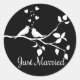 Pegatina Redonda Pájaros negros y blancos recién casados con Boda