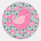 Pegatina Redonda Pájaros y flores de polka