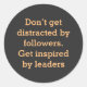 ‘No se distraigan con los seguidores. Inspirarse en los líderes." simple y elegante cita de ánimo con texto simple sobre pegatina redondo clásico. Es totalmente personalizable que puedes cambiarlo según tu elección