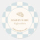 Pegatina Redonda Pale Blue Checkered Cafe Croissant Bakery