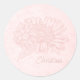Pegatina Redonda Pale Pink Grunge with Name and Chrysanthemums