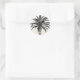 Pegatina Redonda Palm Tree de Isla Tropical Retro en blanco y negro