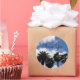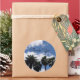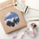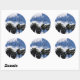 Gracias pegatinas con un fondo de nubes blancas hinchadas en un cielo azul brillante con altas palmeras en primer plano. Encontrar más productos coincidentes en la colección boda Palm Tree.