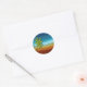 Palmera tropical contra la arena color agua y el océano. ¡Muestra tus invitaciones con estilo! ¡Nos encantan las órdenes de los personalizados!