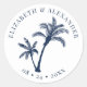 Pegatina Redonda Palm Tree Tropical Beach Wedding Marina Azul