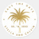 La elegante boda de la palmera dorada salva al pegatina redondo. Para una personalización más avanzada de este diseño, haga clic en el enlace "personalizar más adelante".