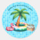 Pegatina Redonda Palm Trees Pool Fiesta Flamingo