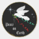 Esta Hermosa pegatina de Navidad "Uno de bondad"...tiene una serena paloma blanca que vuela entre las estrellas con una rama de olivo con los lazos rojos y verdes que fluyen......Difundiendo "Paz en la Tierra"! Este es un diseño de arte original del artista Kerry Miller.