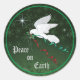 Personalice esta hermosa pegatina navideña "Uno de bondad"! Una serena paloma blanca que vuela entre las estrellas llevando una rama de olivo con cintas rojas y verdes... deseando a todos...¡Paz en la Tierra! Este es un diseño de arte original del artista Kerry Miller".