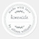 Etiqueta rústica de productos horneados caseros o enlatado de mermelada con el texto casero, hecho con amor y su nombre en tipografía moderna sobre un fondo blanco. Simplemente agregue su nombre a la etiqueta. Puede escribir los nombres de los productos en las etiquetas cuando se realicen los productos. Diseñado exclusivamente para usted por Happy Dolphin Studio. Si necesita ayuda o productos coincidentes, por favor contáctenos en happydolphinstudio@outlook.com.